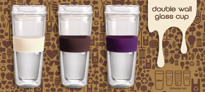 Enjoy hot beverage at home or on the go. The Double Wall Glass Cup holds up to 385ml of your favourite hot beverage, and the double-walled, handmade borosilicate glass keeps hot drinks warm as you get on with your day.