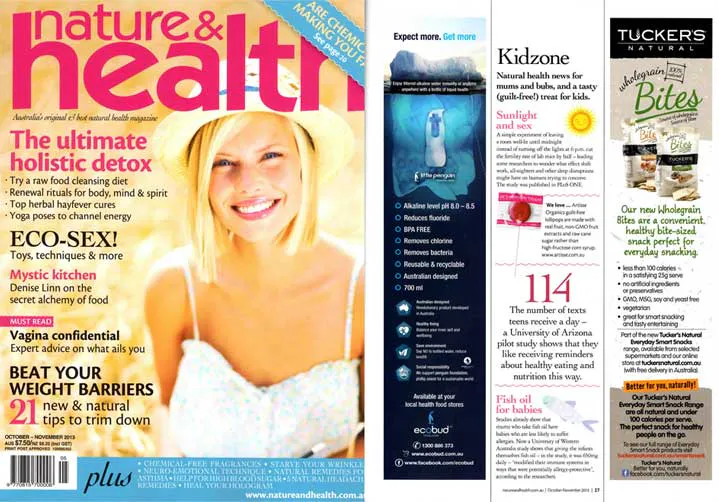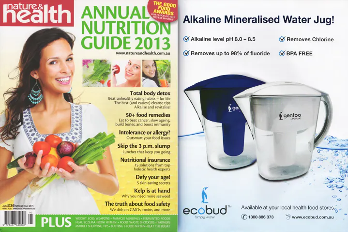 The first appearance of Gentoo Alkaline Water Jug by ecobud™ on Nature & health magazine