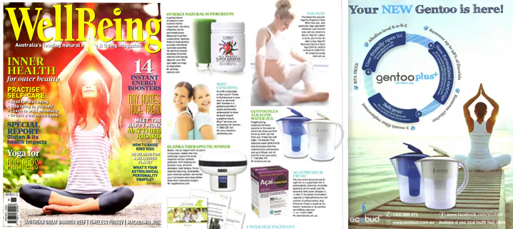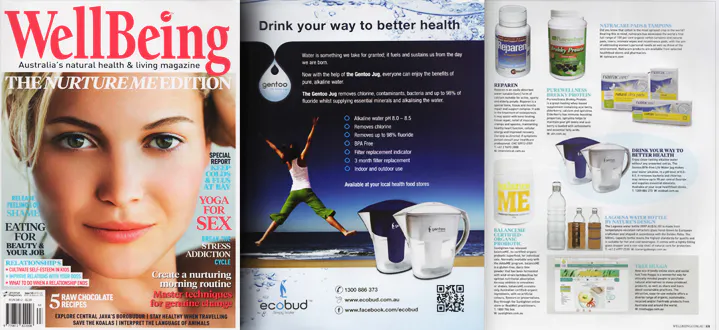 Gentoo alkaline water jug by ecobud featuring on WellBeing magazine issue#145!