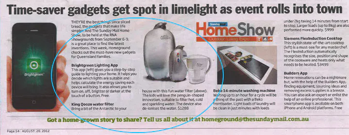 Brisbane Sunday Mail has chosen ecobud's products to be one of the "time saver gadgets" that improve your life quality.