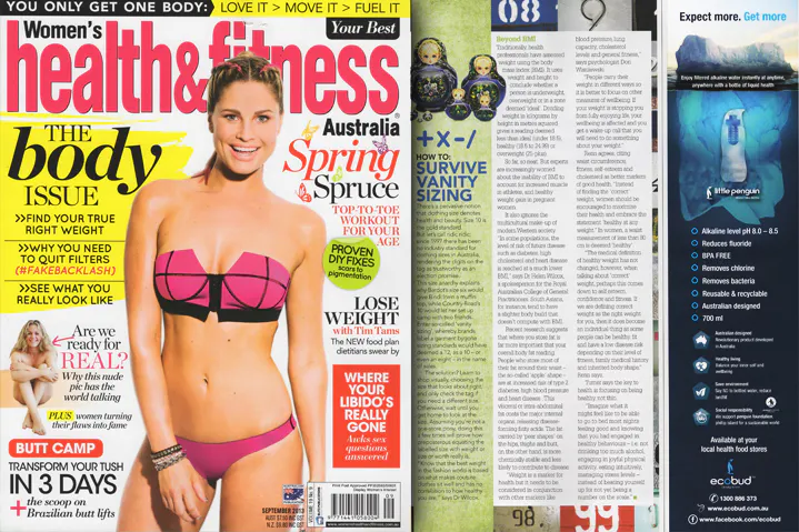 Discover the benefits of Little Penguin Water Filter Bottle at Women’s health & fitness September issue p 35