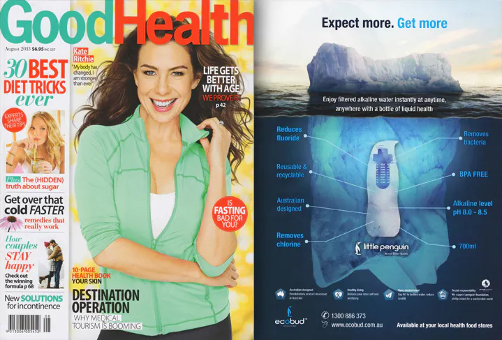 Discover what Little Penguin Water Filter Bottle can bring you for your healthy lifestyle from Good Health magazine August issue @ page 11.